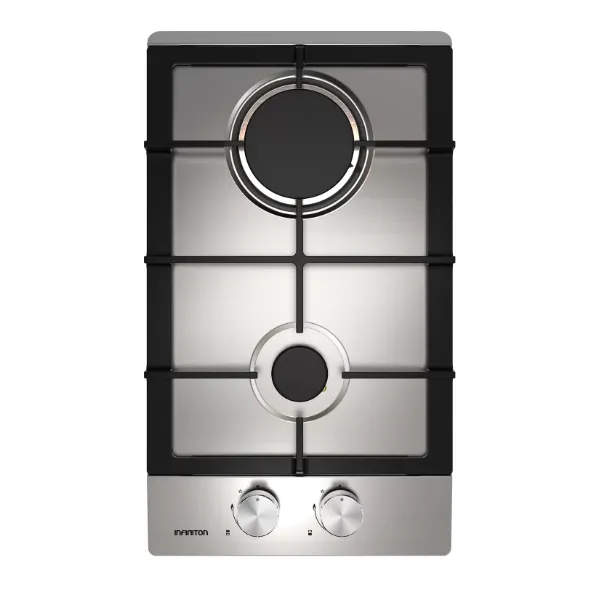 Nº de queimadores: 2 – principal (kW): 3,30 – auxiliar (kW): 1,00 Preparada para gás butano Kit de conversão para gás natural incluído Dimensões: 9x30x52cm Acendimento eletrónico Segurança termopar em cada queimador Grelha ferro fundido Comandos frontais em aço inoxidável Limpeza fácil Cor: Inox