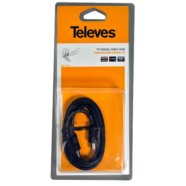 Conectores CEI macho – fêmea Chicote coaxial que incorpora conexão CEI, macho numa extremidade e fêmea na outra. É do tipo micro cabo com apenas Ø 5mm. Para aplicação entre a tomada e os dispositivos de TV. Cobertura exterior de PVC Disponível em diferentes cores e comprimentos