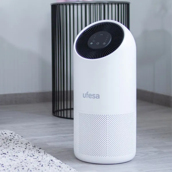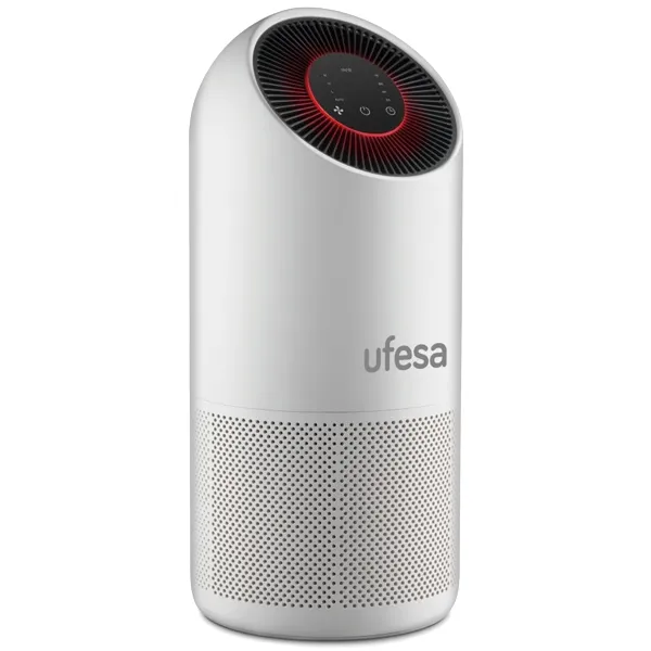 Painel de controle WIFI tátil Sistema de filtro If : 4 camadas Pré-filtro : remove poeira, pêlos de animais, cabelo e outras partículas maiores. Filtro antimicrobiano HEPA13, filtro de carbono ativo: captura odores ruins, captura compostos orgânicos voláteis (VOCs) e vapores. Filtro UV : tecnologia de luz UV ideal para limpar o meio ambiente, esterilizar vírus e bactérias. Nível de som : 30 dB Temporizador : 8 horas Modo noturno Ventilação : Indicador de 3 níveis Taxa de produção de ar limpo (CADR) : 275 m³ / h Espaço recomendado : Ideal para superfícies de até 115 m² Indicador de cor : Qualidade do ar (verde / laranja: médio / vermelho: mau)