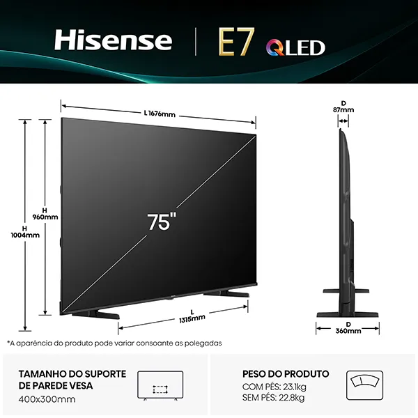 Quantidade de QLED HISENSE - 75E7Q