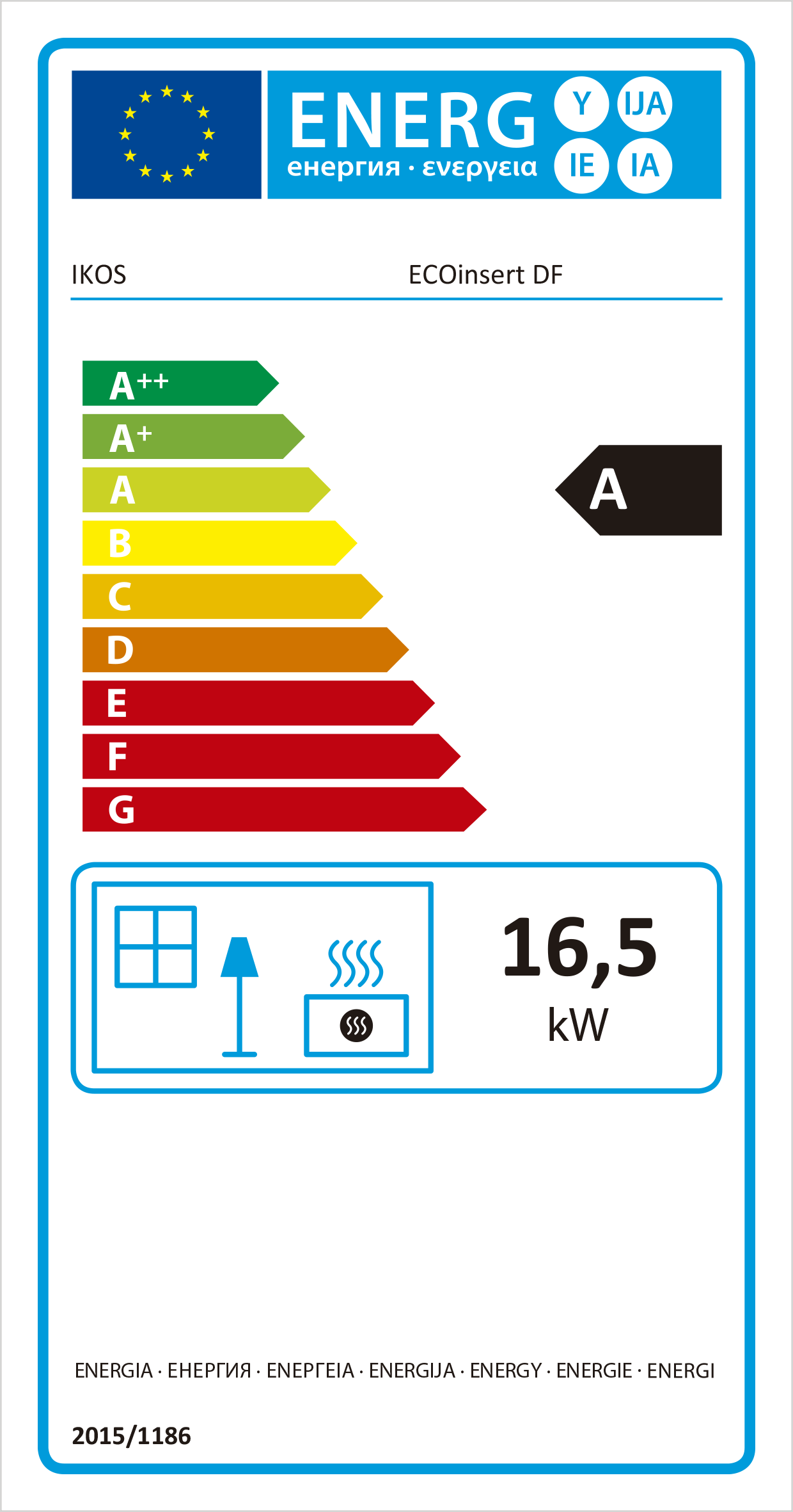 Classe eficiência: ADupla FacePotência nominal: 16,5kWEficiência nominal: 75%Emissões CO (13%O2): 0,26%Volume de aquecimento: 488m3Consumo de combustível: 3,6 – 6,6 kg/hComprimento máx. lenha: 600mmTemperatura fumos: 369ºCDiâmetro da chaminé: 200mmCaudal ventilador: 165m3/h (2X)Peso: 123kgDimensões (axlxp): 591x826x595mm