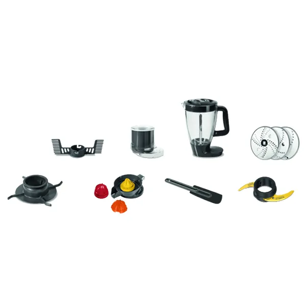 Potência: 1000W 2 motores 6 velocidades: 3 por motor Taça com capacidade total / útil: 3L / 1,5L Liquidificadora com capacidade total / útil: 2L / 1,5L Acessórios incluídos: lâmina em inox Powelix Life, vara para amassar, picadora, 3 discos reversíveis para ralar / cortar / gratinar, disco emulsionador, espremedor de citrinos (com 3 cones) e espátula