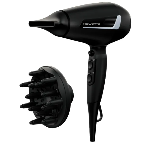 Tipo: Secador Potência: 2100W Motor AC profissional Velocidades: 2 Níveis de temperatura: 3 Fluxo de ar frio Revestimentos: Tourmaline Grelha removível Anel de suspensão Cabo com rotação a 360º Compacto Concentrador 6 mm Difusor de volume Cor: Preto e cinza