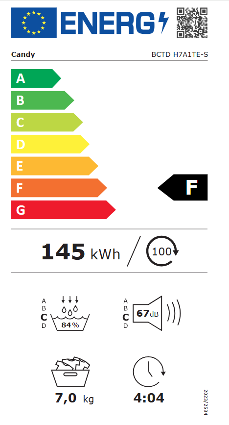 Consumo de energia do secador elétrico, carga completa – NOVO (2010/30/EU): 2,25