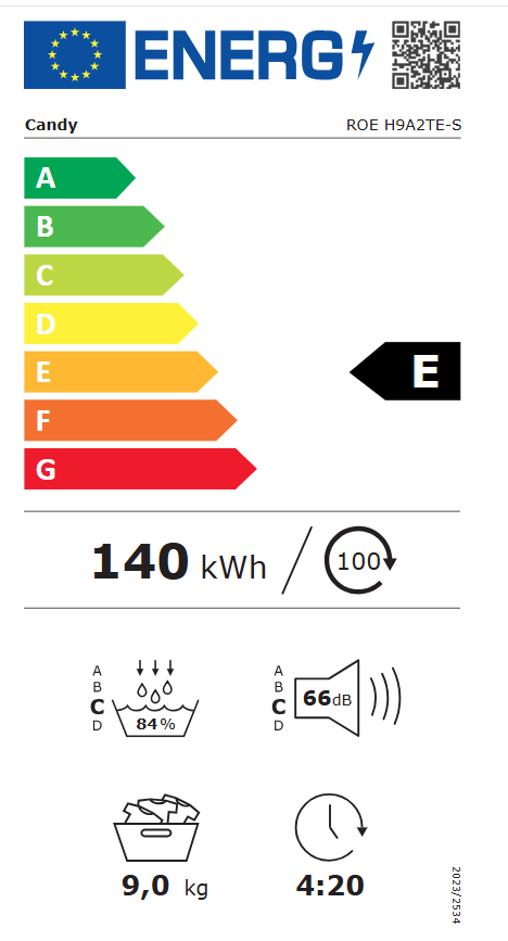 Consumo de energia do secador elétrico, carga completa – NOVO (2010/30/EU): 2,16