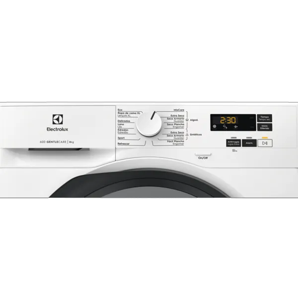 Funções: Ligar/Desligar, Extra anti-rugas, Alerta de fim, Tempo de secagem, Início diferido, Início/Pausa