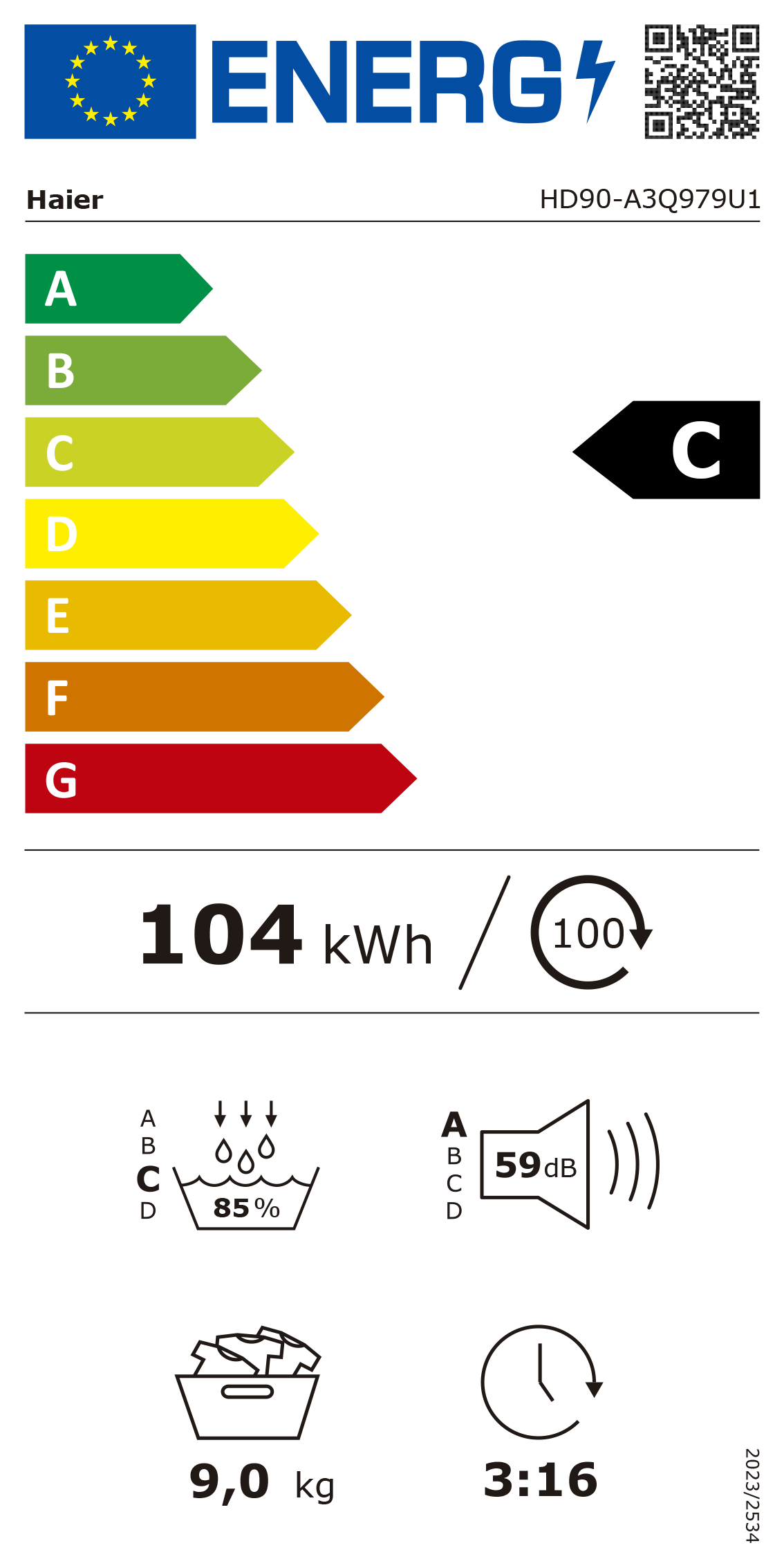 Tipo de secador de roupa: Bomba de calor Inverter