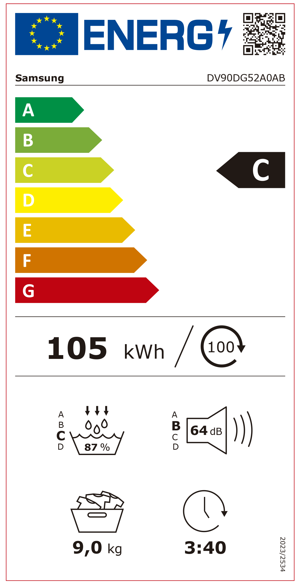 Prevenção de Vincos, Nível de Secagem, Tempo de Secagem, Alerta de Humidade, Luz do Tambor, Bloqueio para Crianças, Desligar o Som; Roupa de Cama; Secagem Rápida 35'; ECO Algodão; Roupa Delicada; Carga mista; Sintéticos; Higienização; Transferidos