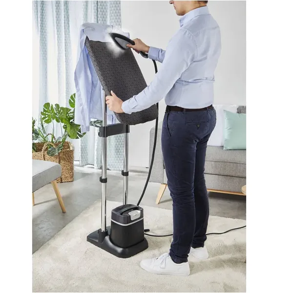 Potência: 2980W Super vapor: 90 gr/min Pressão da bomba: 5 bares Cabeça de vapor: Base em aço inoxidável Higieniza e remove odores Depósito de água fixo Desligar automático Comprimento do cabo de alimentação: 3m Altura ajustável: Dupla Botão ligar/desligar Indicador de vapor pronto Arrumação do cabo de alimentação: Gancho Cabide Tábua Smart integrada com 3 posições Base portátil Rodas Acessórios: Escova para tecidos grossos