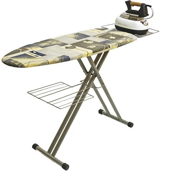 Tábua de passar a Ferro. Fabricada em chapa Inox. Altura regulável até 93 cm .Medidas 117x40cm . Base de felpo de 7mm. Cobertura de algodão 100%. Suporte para Ferros com Caldeira.