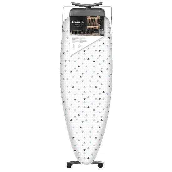 Suporte grande para centros de passar roupa, deslizando para ocupar menos espaço Capa 100% algodão, enchimento de espuma de 8mm Plataforma robusta de resistência máxima Regulador de altura até 98cm Desenho específico de pés para passar a ferro sentado Rodas para fácil transporte Peso: 7.3kg