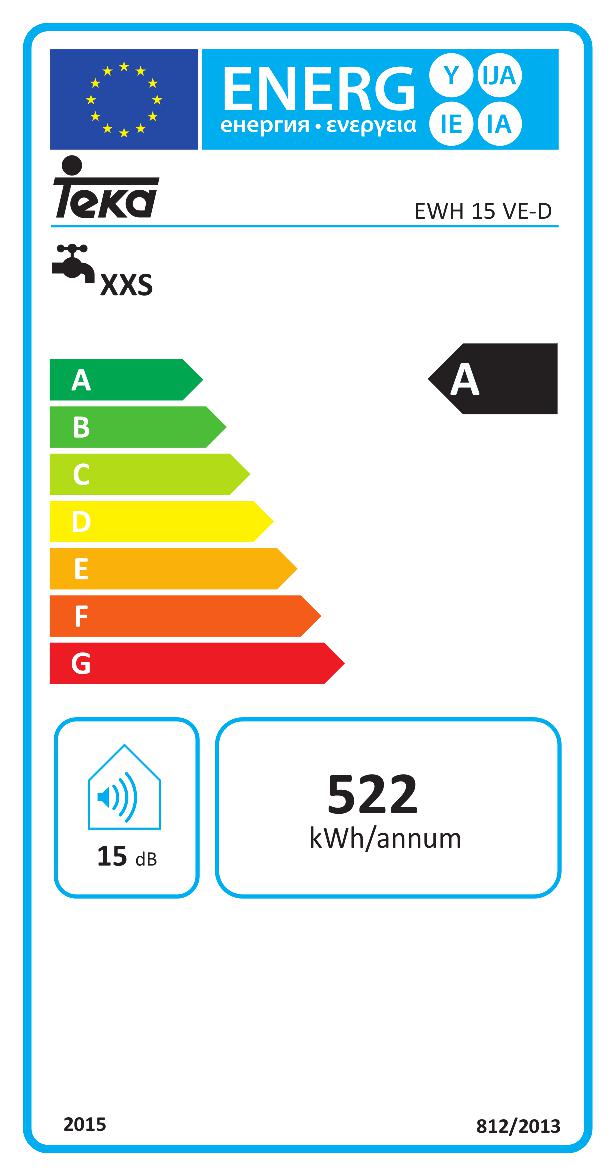 Instalação vertical SMART CONTROL eletrónico Capacidade: 15 litros Cuba esmaltada em safira Indicador de temperatura LED Temperatura regulável: 30º-75ºC Válvula de pressão >7,5 bar Pressão máxima: 0.75 Mpa Válvula de segurança,proteção contra sobreaquecimento e aquecimento a seco Potência 1.500 W Espessura do isolamento: 20 mm Ânodo de magnésio N.º médio de usuários: 1-2 pessoas Classificação energética A Medidas gerais (axlxp): 384x340x340mm