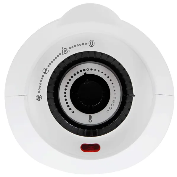 Seletor rotativo de 3 posições: – Modo fun – 2 potências 1000 – 2000W Calor instantâneo Temperatura ajustável por termostato Pega de transporte Sistema de proteção contra sobraquecimento Luz indicadora de funcionamento Potência: 2000W Dimensões (LxAxP) 210x255x180mm Voltagem: 220 – 240V ~ 50/60Hz