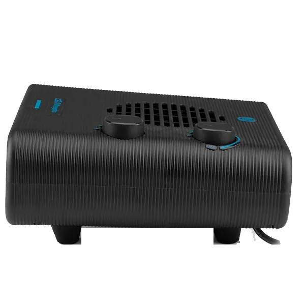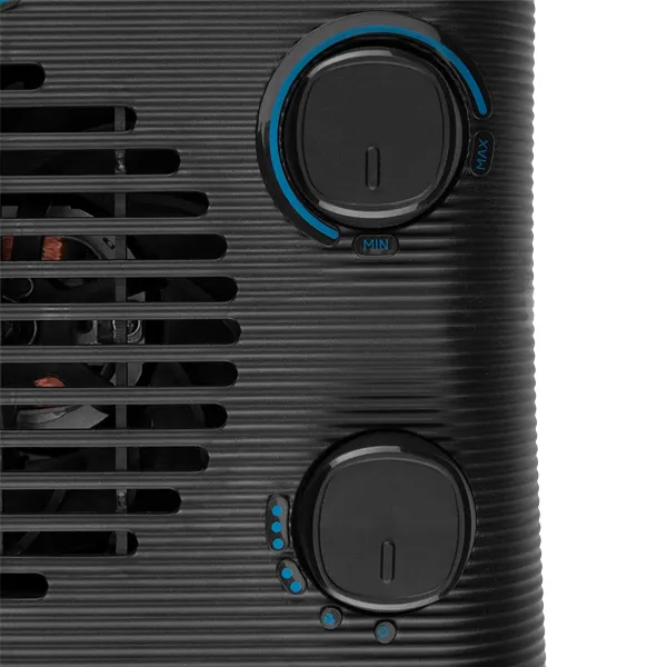 Potência máxima: 2200W3 posições operacionais:– Ventilador– Calor: 1100W– Calor: 2200WCalor instantâneoDesign horizontal altamente estávelTermóstato ajustável de temperatura ambienteSistema de proteção contra sobreaquecimentoLuz indicadora de operaçãoLeve e fácil de transportarMedidas (lxaxp): 25x12x25cmConexão: 230V – 50Hz