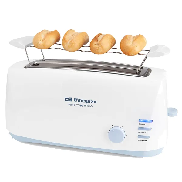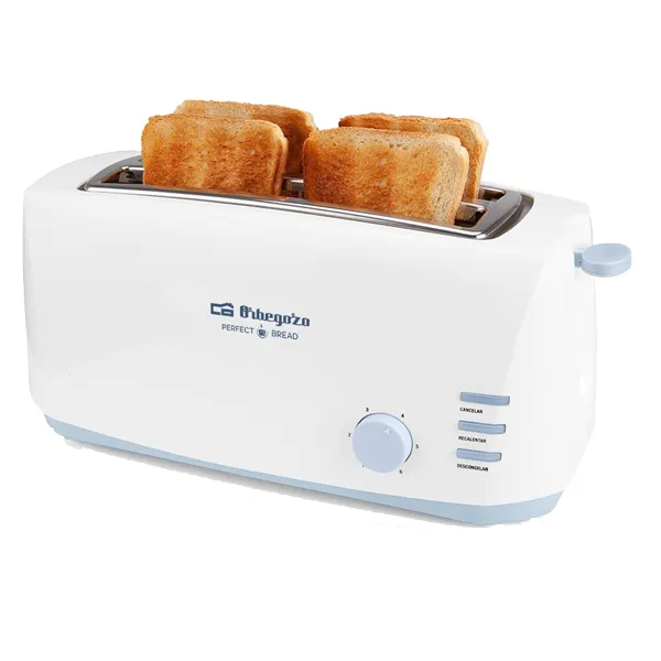 Potência: 1400 W. Desligamento automático. 2 ranhuras longas para 4 fatias. Função de descongelação. Função de reaquecimento. Função de parada rápida. Bandeja de migalhas. Aquecedor de pão incluído. 6 configurações de torradas. Armazenamento do cabo. Conexão: 230 V ~ 50 Hz