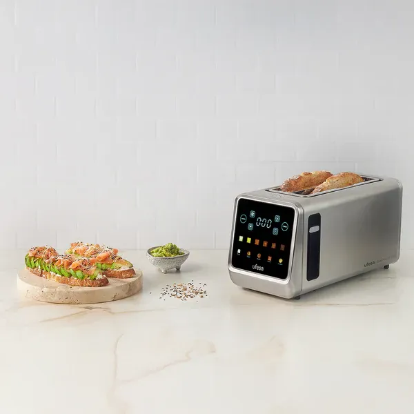 Torradeira em aço inoxidável com duas ranhuras longas e extralargas