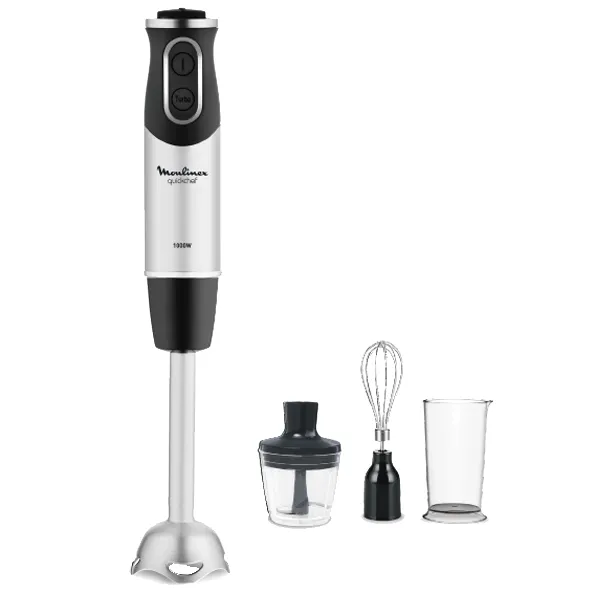 Potência: 1000 W Função Turbo Velocidades: 10 Material do pé: Aço inoxidável Pé desmontável Copo graduado Capacidade do copo: 800 ml Picadora Capacidade da picadora: 500 ml Acessório emulsionador Pega ergonómica Compatível com máquina de lavar loiça Cor: Inox e Preto
