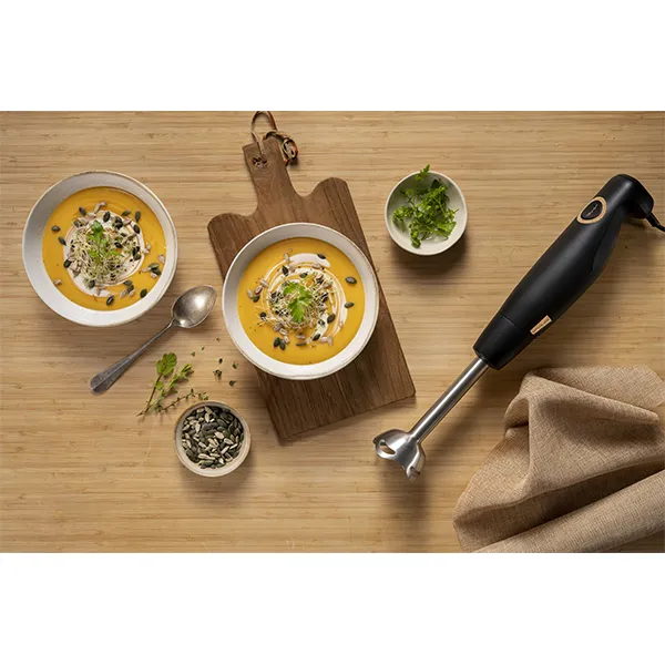 Potência: 600 WVelocidades: 2Número de Lâminas: 4Tecnologia Lâminas PowelixPlástico Reciclado (51%)Material do pé: Aço inoxidávelPé desmontávelCopo Capacidade do copo 800 mlCompatível com máquina de lavar loiça: pé e copoCor: Preto Mate