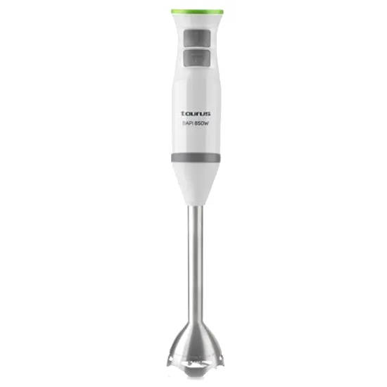 Potência: 850W. Motor de alto rendimento Selector electrónico de 20 velocidades. Função TURBO para conseguir máxima potência. Turbo Rotation System. Sistema melhorado de circulação dos alimentos. Lâminas de aço inox de alto rendimiento e duplo efeito: Batem e picam Pica gelo Disenho ergonómico com acabamento soft-touch. Montagem fácil da varinha e dos acessórios Bordo com design anti-salpicos Varinha isentos de BPAs Acessórios aptos para lavagem na máquina Inclui picador, batedor emulsionante e copo medidor