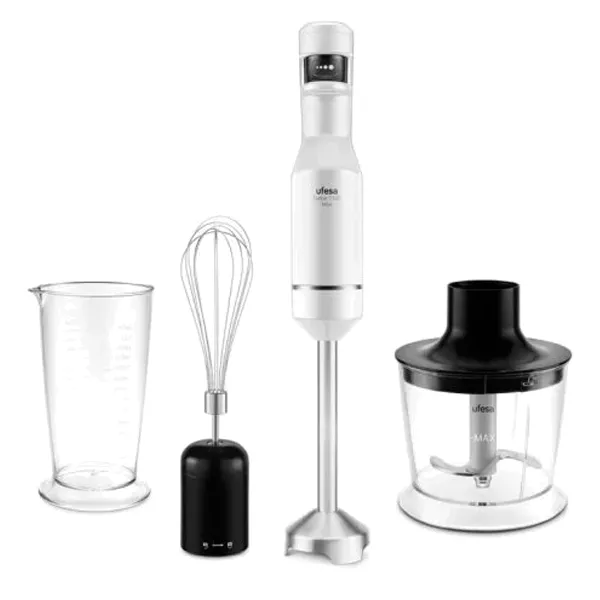 Potência 1500W Touch speed – Permite o controlo de velocidade Visor digital 4 lâminas de alta eficiência Ergonómico Design anti-salpicos Copo medidor de 700 ml Picador de 500 ml Batedor