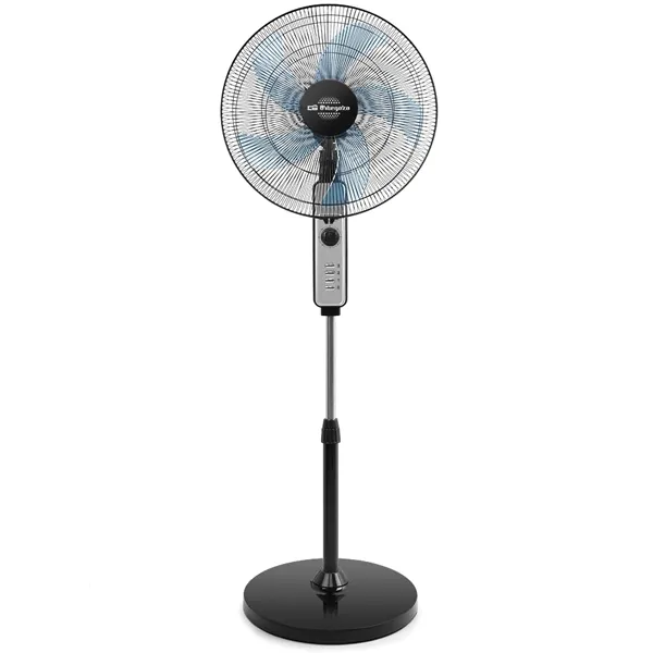 Potência: 80W Diâmetro da lâmina: 45 cm. 5 lâminas. 3 velocidades. Função oscilante e cabeça basculante. Temporizador de desligamento de até 1 hora. Altura ajustável até 150 cm. Grade de segurança. Conexão: 230 V/50 Hz.
