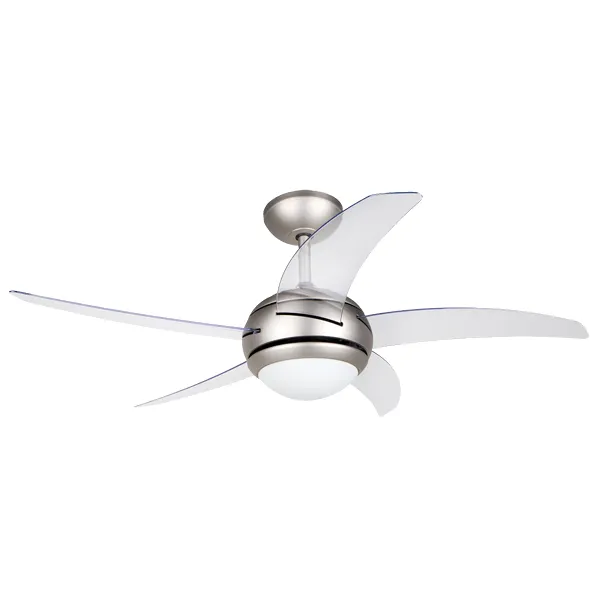Diâmetro: 112cm3 velocidades de ventilaçãoSistema de ventilação reversível: modo inverno e verãoControlo remoto5 pás transparentesSilenciosa1 luz E14 60W (não incluida)Altura: 41cmPotência: 55WTensão: 230V – 50Hz