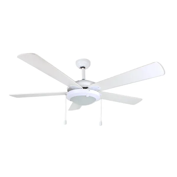 Diâmetro: 132cm3 velocidades ventilação reversívelSistema de ventilação reversível: modo inverno e verãoBranco5 pásLuz tipo E27 2X60w (não incluidas)Altura: 42cmPotência: 60WTensão: 230V-50Hz