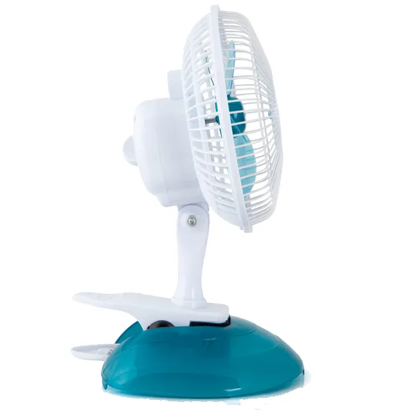 2 em 1 ventoinha de mesa ou com pinça Diâmetro: 15cm 2 velocidades de rotação Muito silencioso Potência: 8W Tensão: 230V – 50Hz