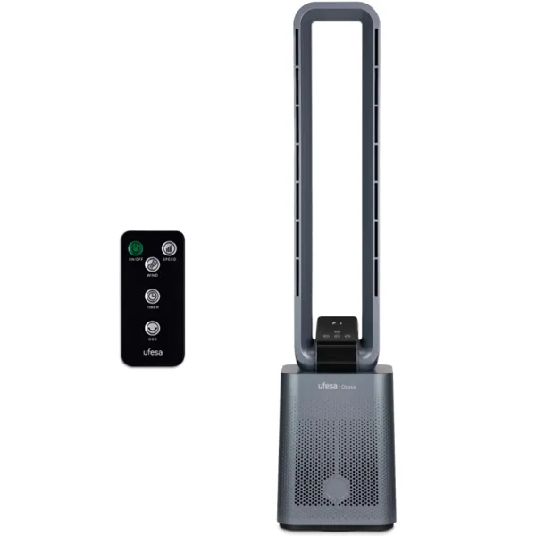 Ventoinha silenciosa sem pás Potência 50 W 3 velocidades 3 modos de ar 40° de oscilação esquerda/direita Ecrã tátil LED Controlo remoto Altura: 97 cm